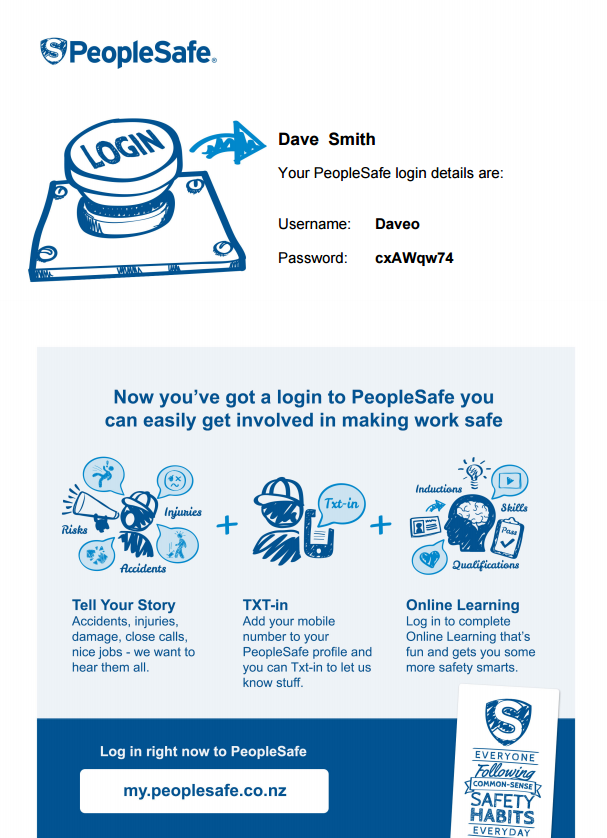 They will go to your PeopleSafe Profile and click on the Reset Password and Generate Password PDF, which they will download and print out for you. The PDF looks like this