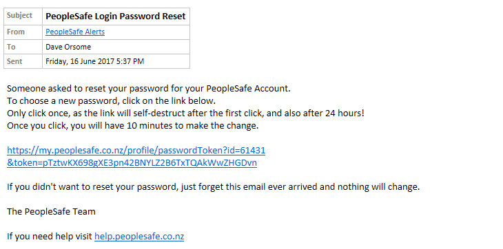 PS - This password reset gets sent to your Best Email Address that you added in PeopleSafe. So it may be your personal one.