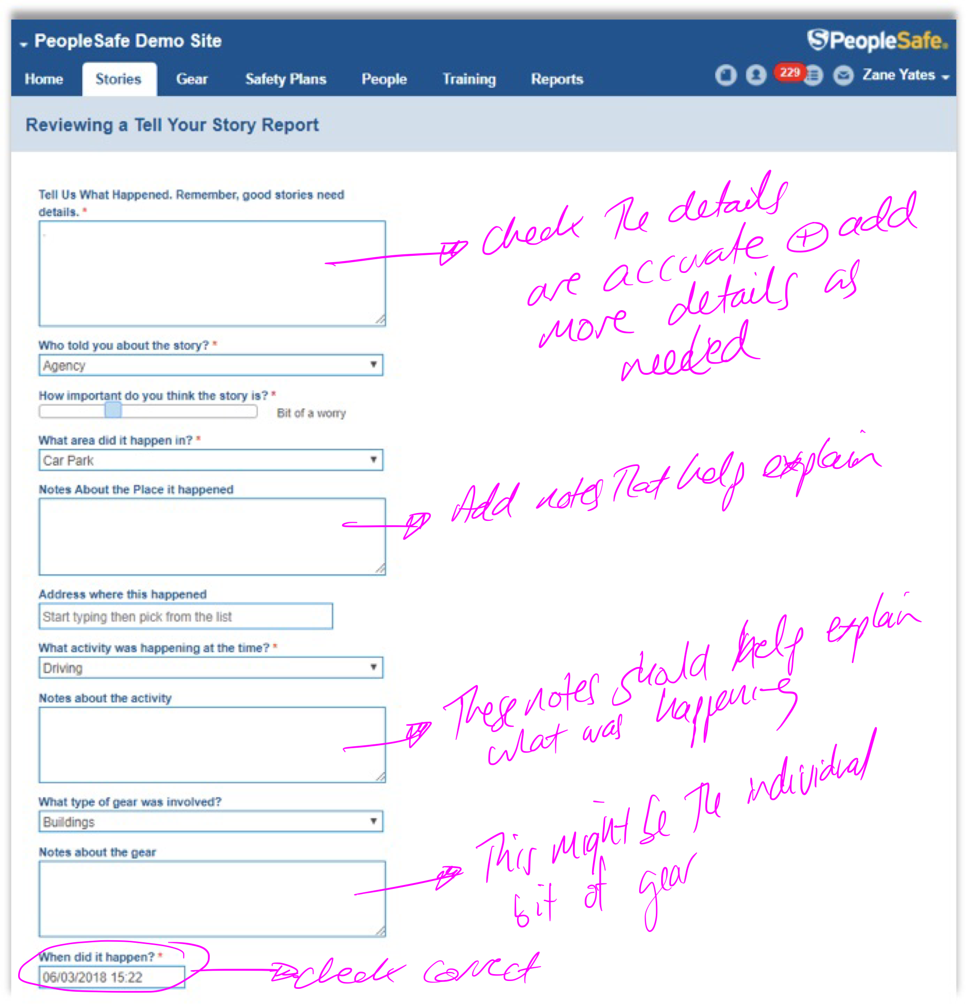 - PeopleSafe has a fixed review process that you will need to follow while doing the review.